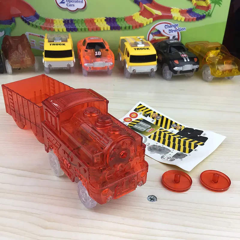 С карточным поездом:Вес: около 115 г, длина: около 21 см локомотив самая высокая точка: 7,4 см, 5,2 см наружное колесо широкое, подходит для использования на внутренней ширине 5,5 см или более дорожек;.