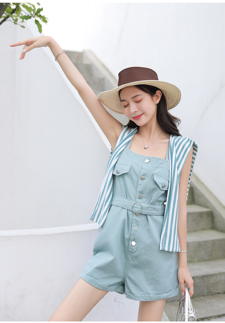 Комбинезон женский джинсовый короткий облегающий ромпер с шортами повседневный
