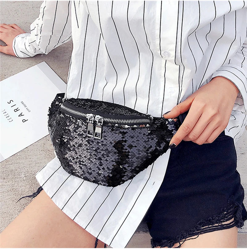 Двусторонняя блестящая поясная сумка русалки с блестками