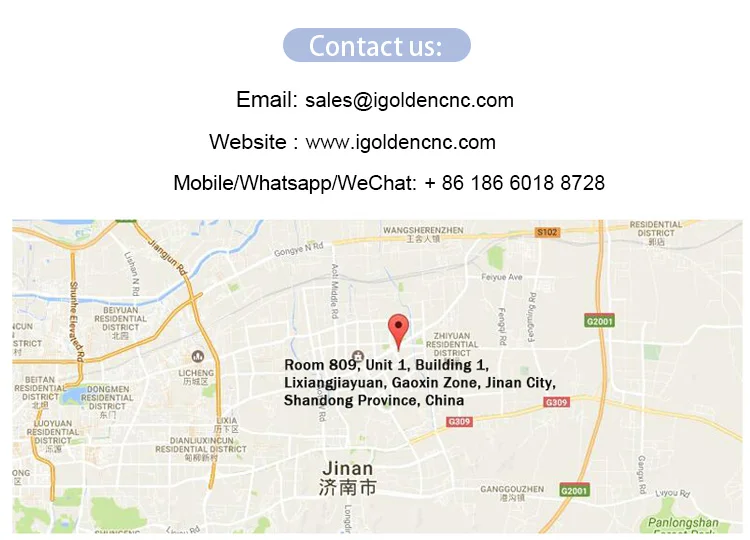 Jinan iGolden CNC Equipment Co.,Ltd. Является R & D, производство, продажа интеграции компании, которая специализируется на фрезерных станках с ЧПУ, лазерной гравировки и резки, плазменной резки, режущий плоттер и т. Д. Основная конфигурация включает в себя топ-запчасти, импортируемые из Италии, Японии, Германии и т. Д. И добро пожаловать к нам для большего выбора.