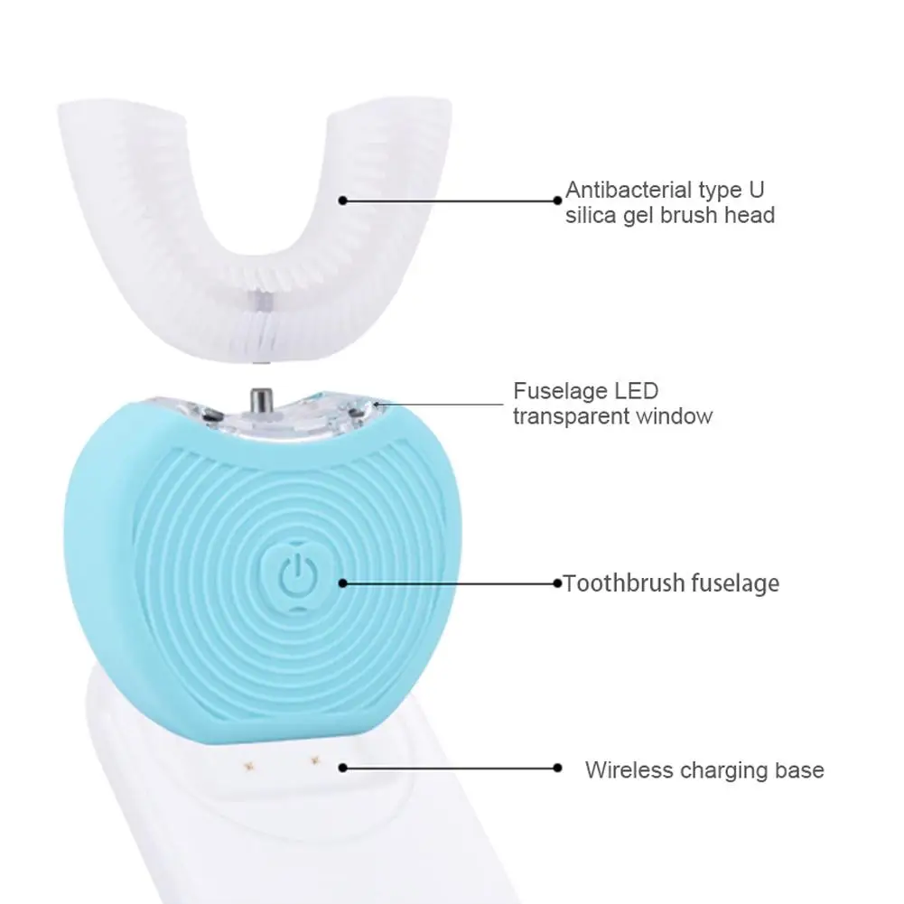 360 градусов автоматическая электрическая зубная щетка перезаряжаемая звуковая зубная щетка USB Силиконовая щетка для ухода за зубами умный u-тип40P