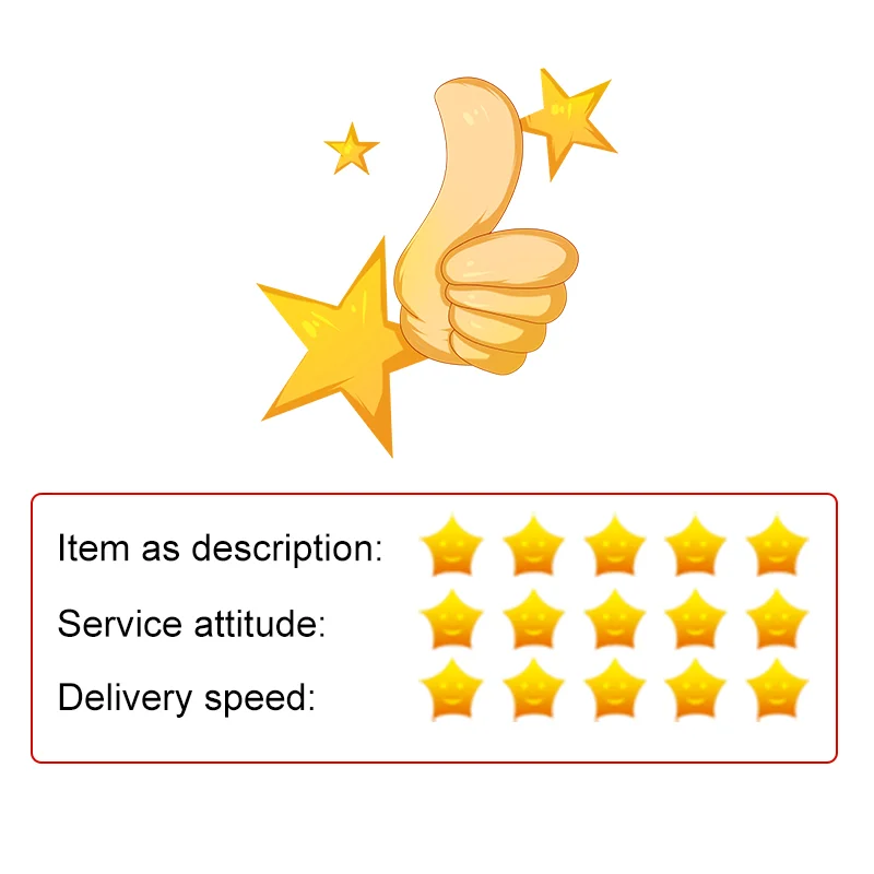 Если вы удовлетворены нашим обслуживанием и продуктами, пожалуйста, оставьте нам положительные отзывы и оцените детали, фотографии сделки (подробные оценки продавца) с «идеальными 5 звездами». Ваша оценка поможет другим покупателям, которые хотят купить продукцию. Пожалуйста, не оставляйте оценки 1 или 2 и негативные отзывы. Если у вас есть какие-либо вопросы, пожалуйста, сначала свяжитесь с нашим персоналом по обслуживанию клиентов. Мы сделаем все возможное, чтобы решить вашу проблему. Пожалуйста, дайте нам шанс решить проблему.