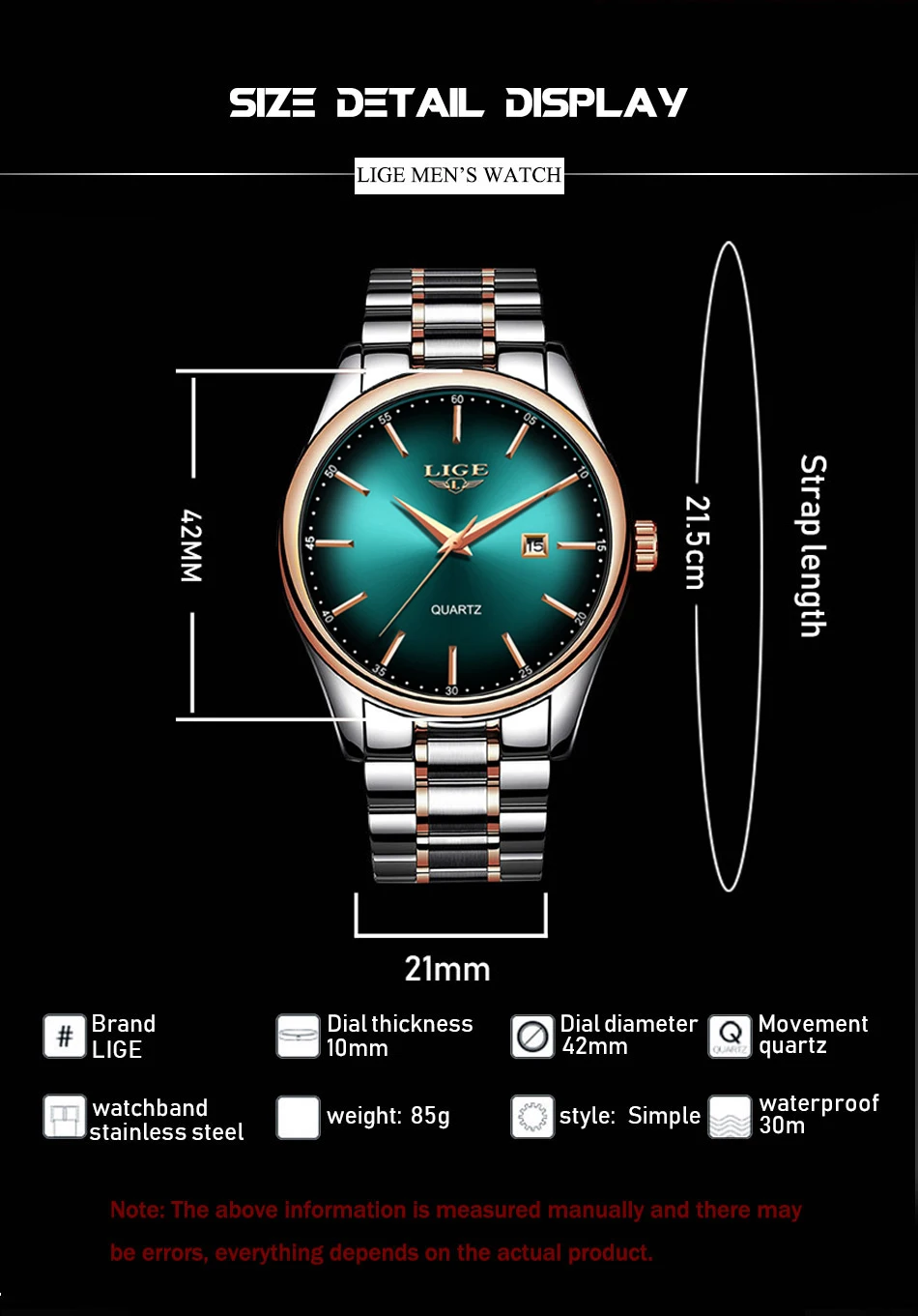 Новые деловые часыМодный Роскошный циферблатВизуальное воздействие 100%Нержавеющая стальКреативный и практичный маленький циферблатЯпонское движениеХарактеристики продуктаДиаметр циферблата: 42 ммТолщина циферблата: 10 ммДлина ремешка: 21,5 смШирина ремешка: 21 ммВес: 85 гСоотношение цены и качества1 часы1 подарочная коробка1x гарантийный талон1 х Пылезащитная ткань1xLIGE тег