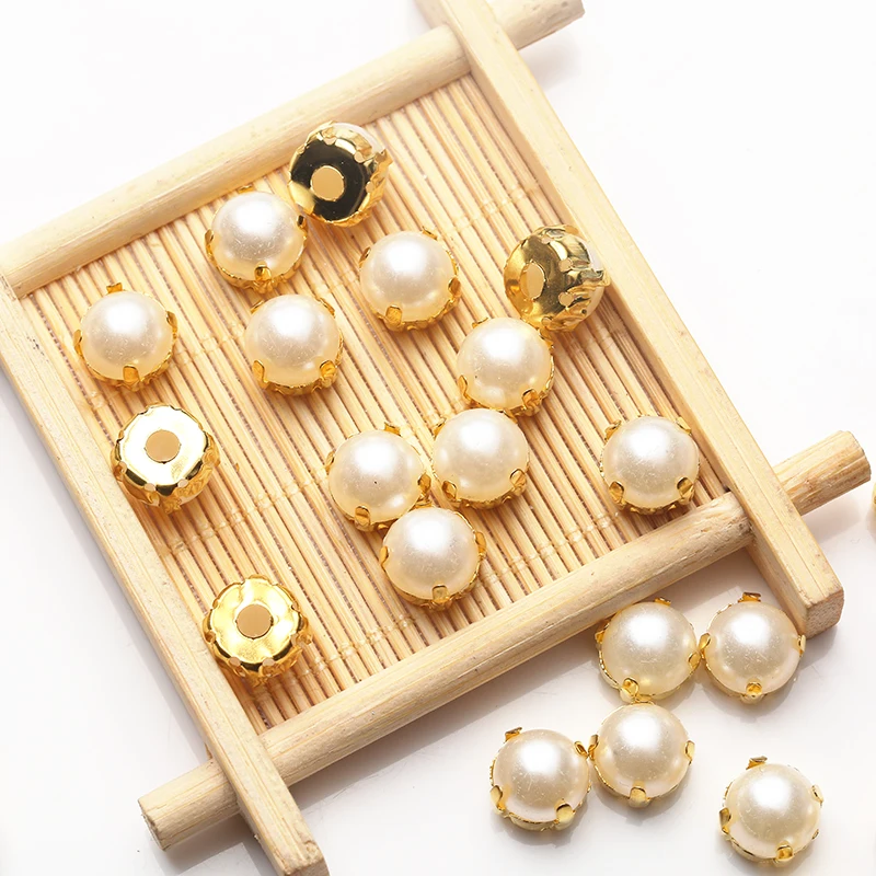 RESEN 10 мм 50 шт Пришивные жемчужины с плоской задней поверхностью Золотые/Серебристые Акриловые круглые жемчужные пуговицы пришивные камни для одежды