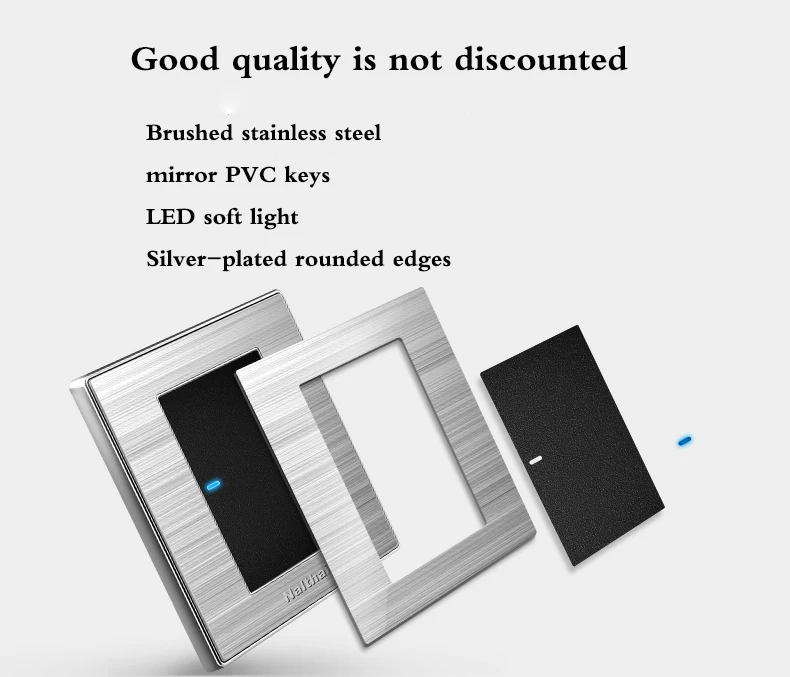 1 2 3 банды 1 2 кнопки домашний переключатель розетка тип 86 настенный со светодиодной щеткой из нержавеющей стали зеркальный светильник Точечный переключатель