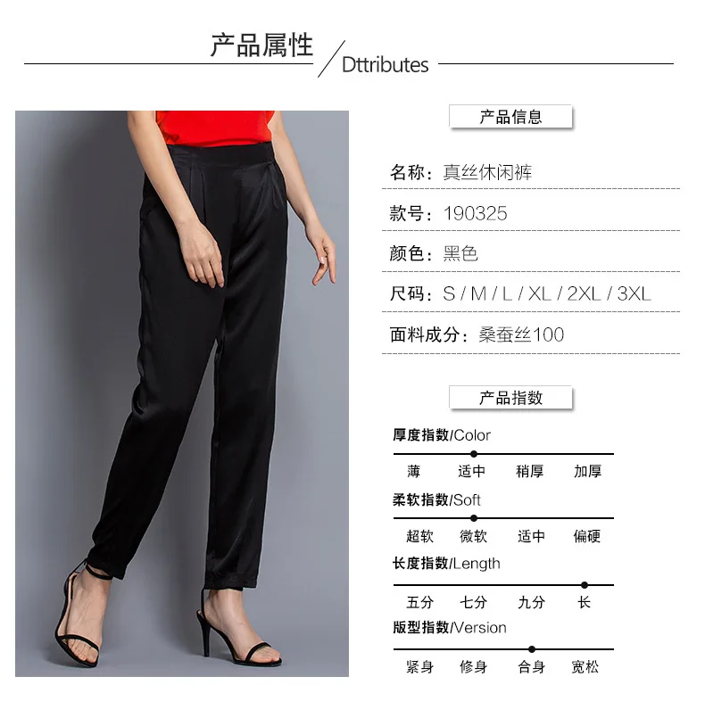 | Черные шелковые брюки тутового шелкопряда женские летние шелковые повседневные брюки вертикальные прямые брюки длиной до щиколотки тонкие брюки Лето 190325 | Ткань: 100% шелк тутового шелкопряда | |||