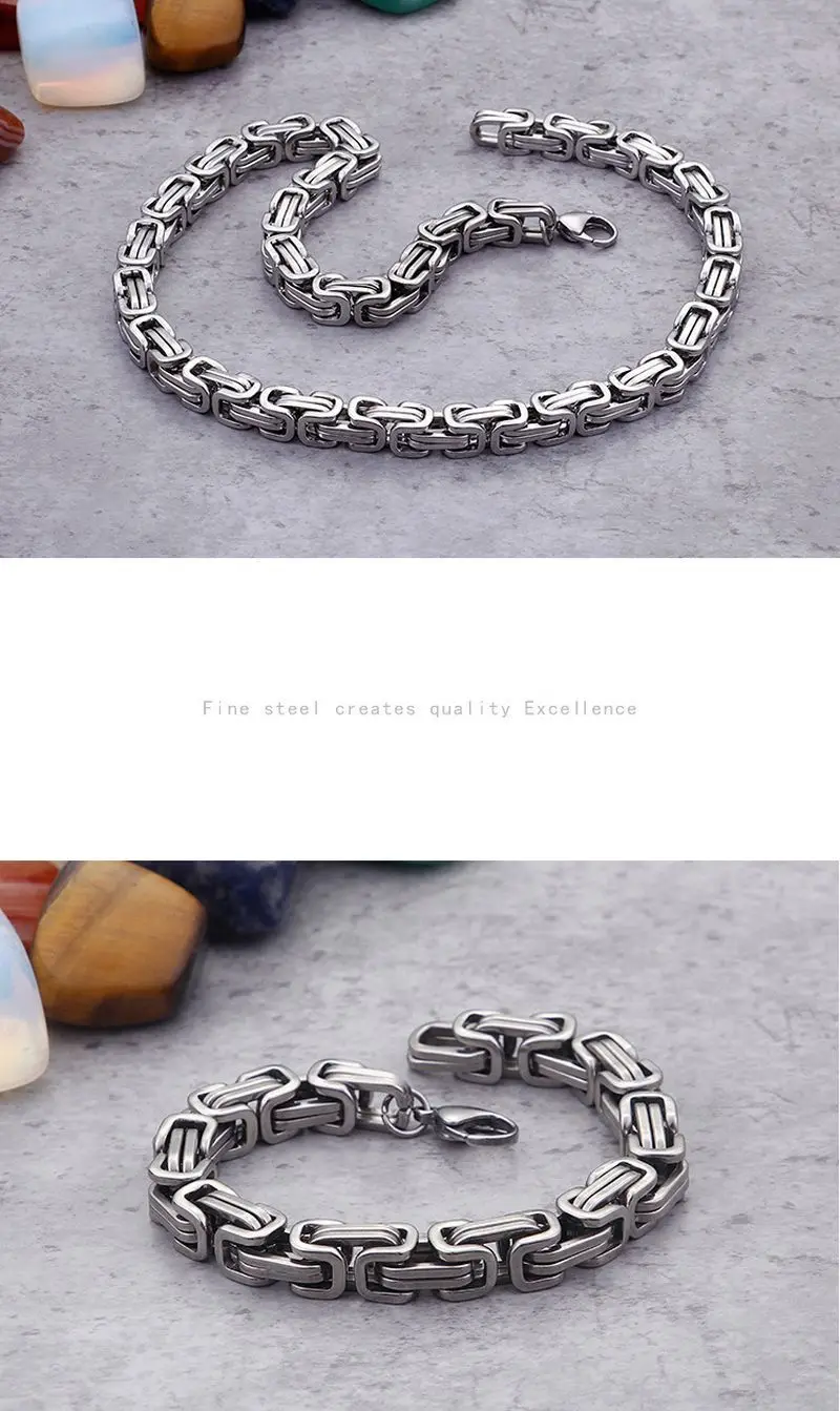 Мужское византийское ожерелье-цепочка из нержавеющей стали Флуоресцентный Цвет: Белый Золото Черный Белый и золотой Белый и черный Золотой и черный Флуоресцентный 3 мм, 4 мм, 5 мм, 6 мм, 8 мм, 10 мм широкая полированная цепь. Классический комплект мужских украшений! Винтажный Византийский браслет-цепочка с ожерельем, удобный и доступный; Нержавеющая сталь прочная, без никеля, не потускнеет и не оставляет стального цвета на всю жизнь! С вельветовыми (бархатными) сумками на завязках. Легко и экологично