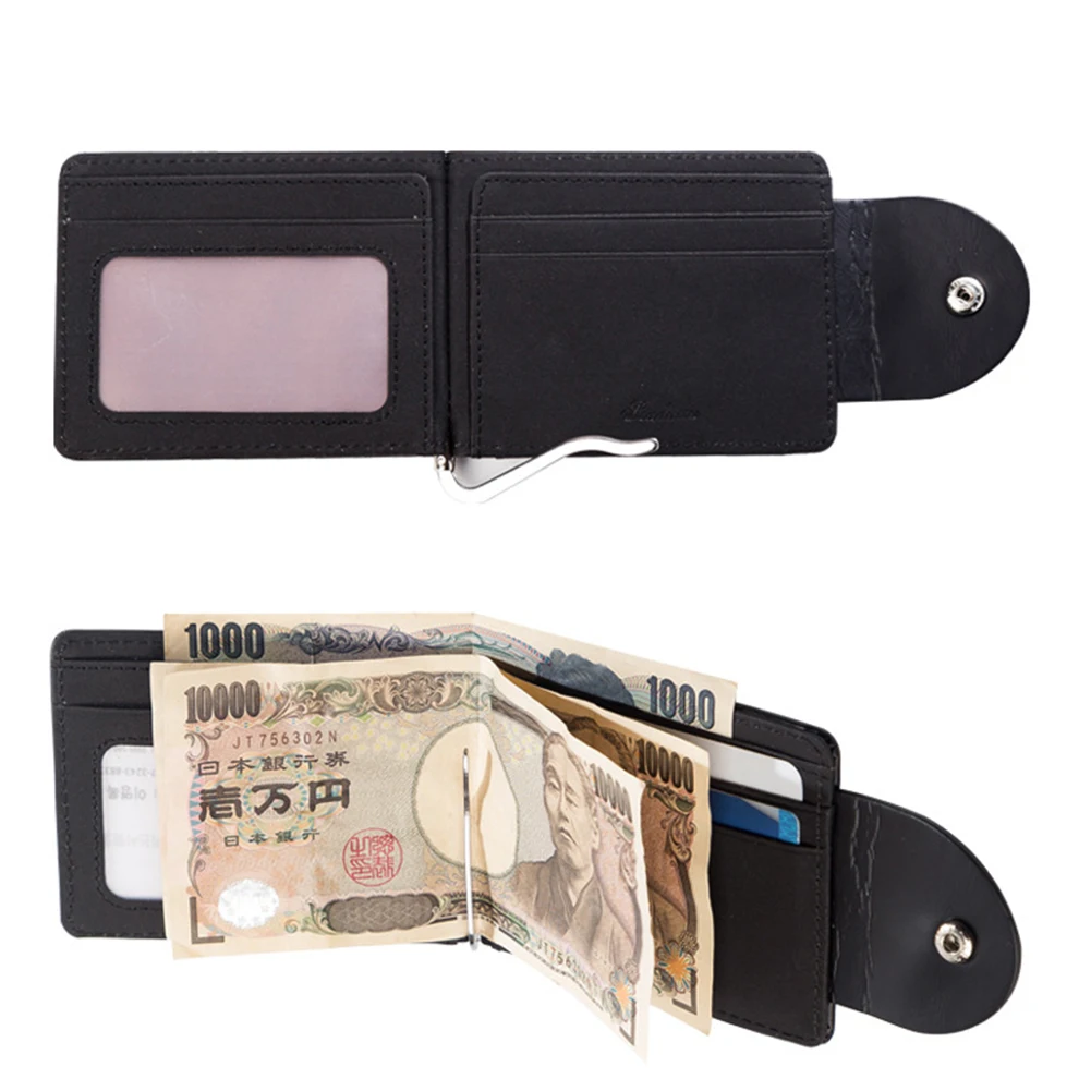 Мужской короткий кошелек с зажимом для денег, металлический кожаный тонкий мужской кошелек-органайзер для карт, кошелек на пуговицах
