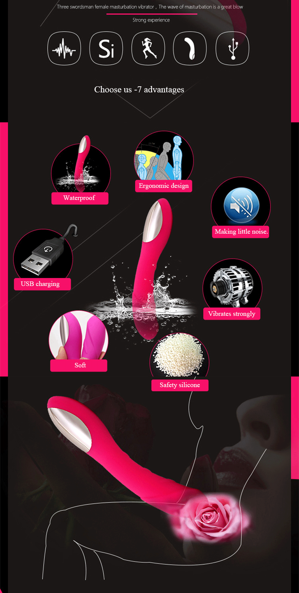 Женский Av палка одновременный массажер Высококачественная МОЩНАЯ ВИБРАЦИЯ 7
