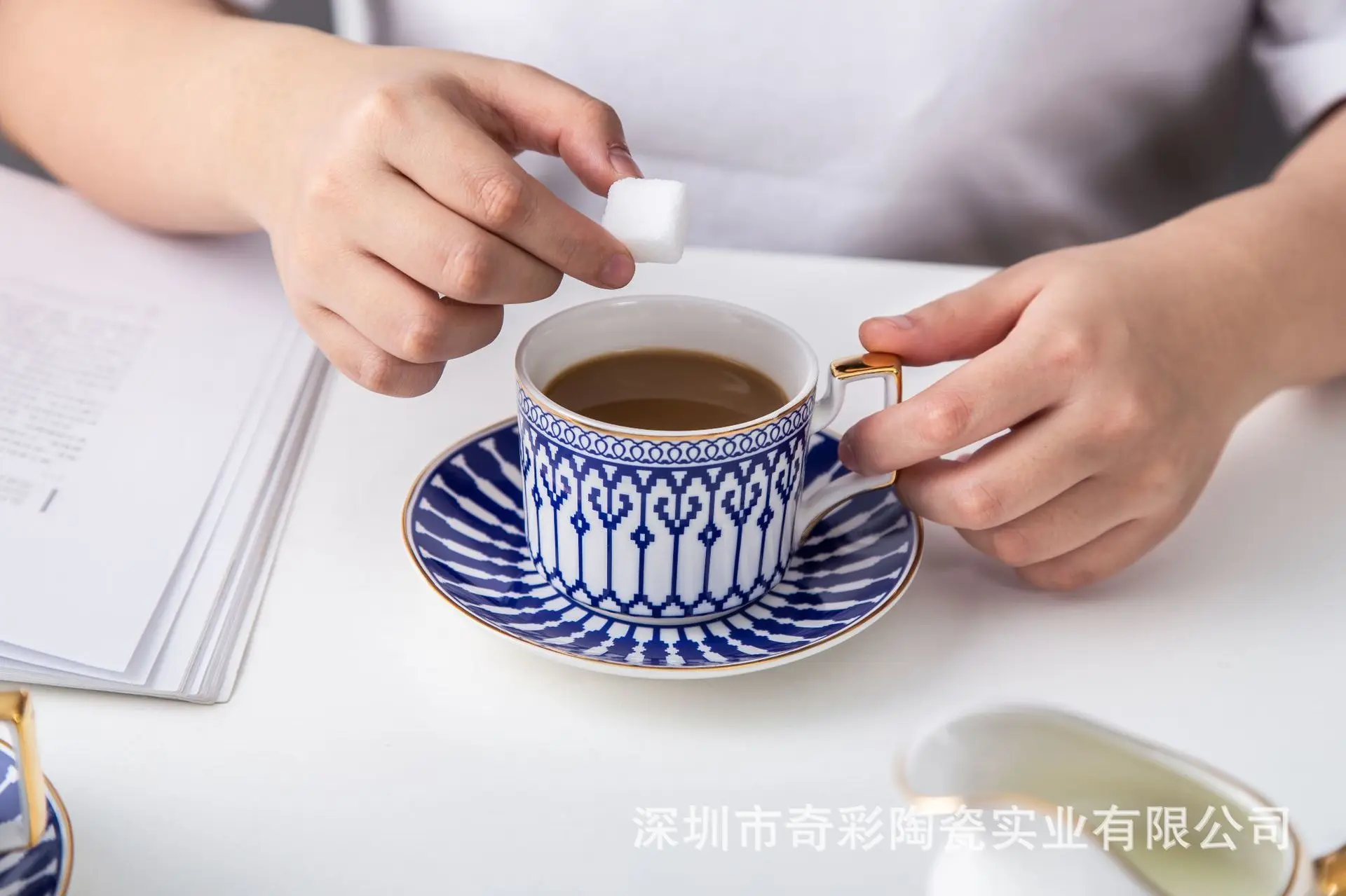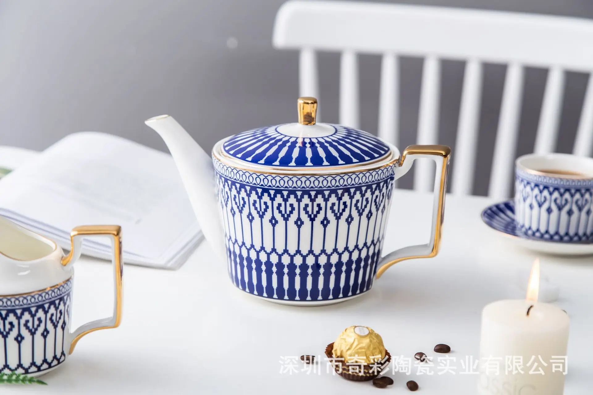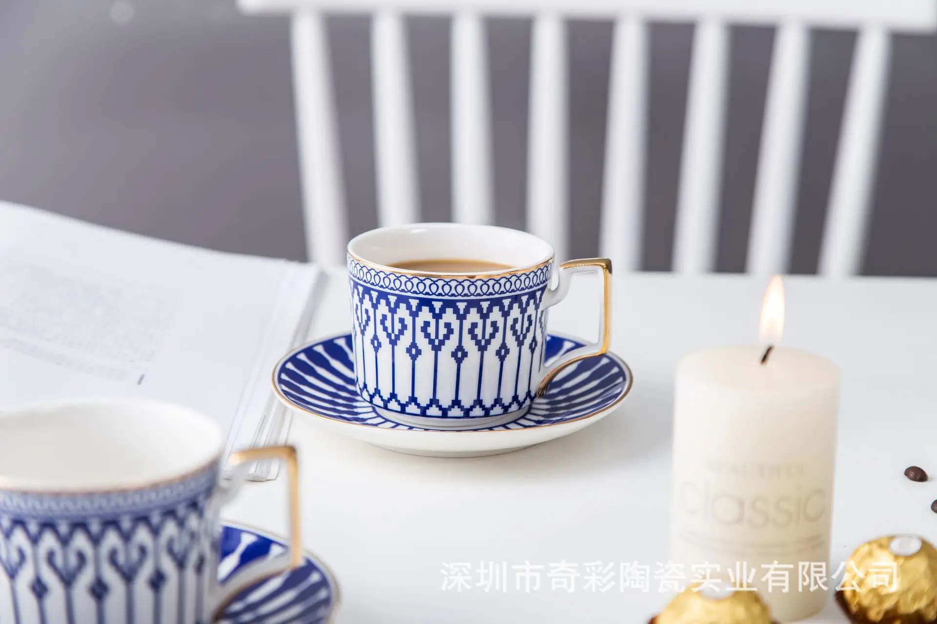 [Наименование]: керамический кофейный набор с синим узором