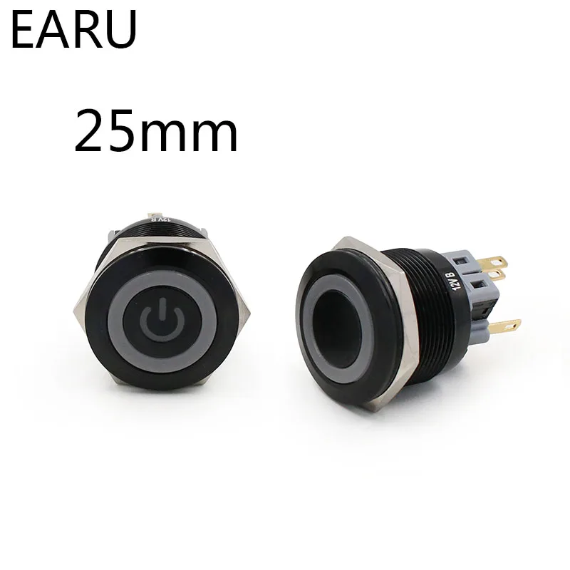 25 мм оксид алюминия металлический кнопочный переключатель светодиодное светящееся кольцо Круглый Мгновенный 6 Pin переключатели автомобиля 12V 24V цвет желтый, синий; размеры 34–43