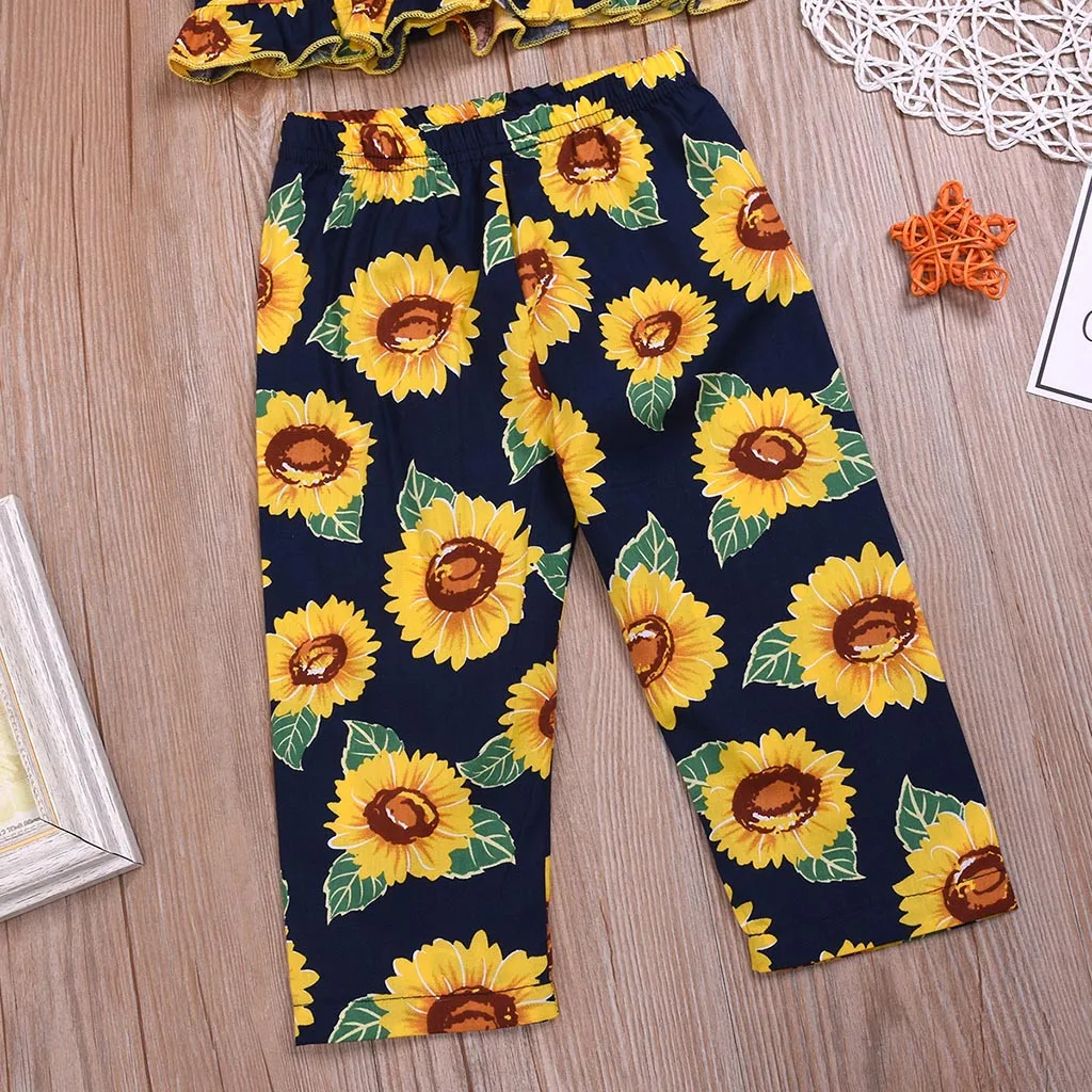 Жилет без рукавов с оборками и принтом подсолнуха для маленьких девочек комплект одежды из топа и штанов
