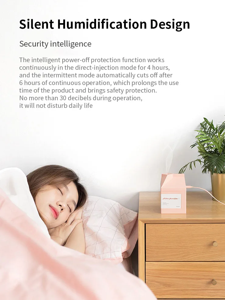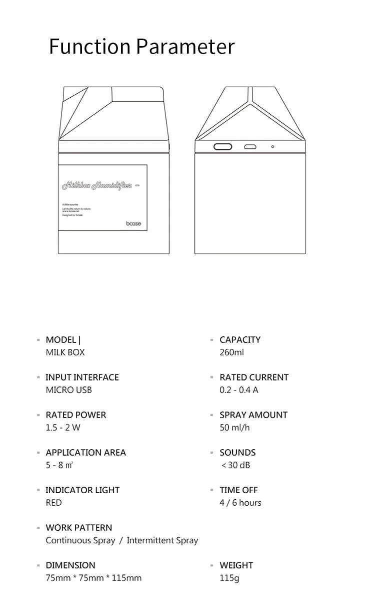 Тщательно рассчитанная Емкость и количество распыления отвечают требованиям увлажнения небольшого пространства и обеспечивают двухступенчатый режим увлажнения прямого впрыска/прерывистого распыления.