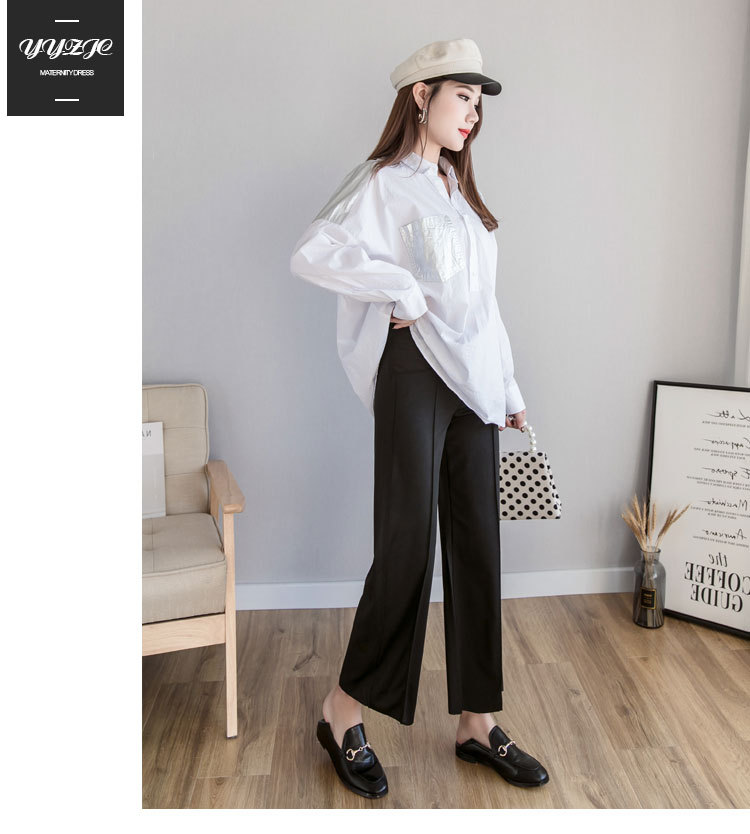 9/10 длина тонкие широкие брюки для беременных брюки с эластичной резинкой на талии Одежда для беременных женщин OL Формальная работа беременность QV847