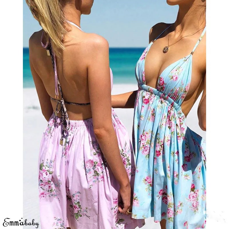 Женское сексуальное праздничное мини-платье с v-образным вырезом и бретельками, летнее пляжное платье без рукавов с цветочным рисунком, большие размеры XXL, пляжные повседневные платья, сарафан
