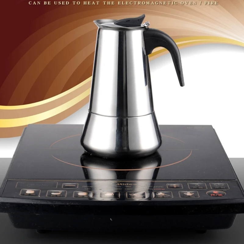 Прочная кофеварка мокко из нержавеющей стали для эспрессо, кастрюля, инструмент, фильтр, Перколятор, легкая эксплуатация, латте-машина