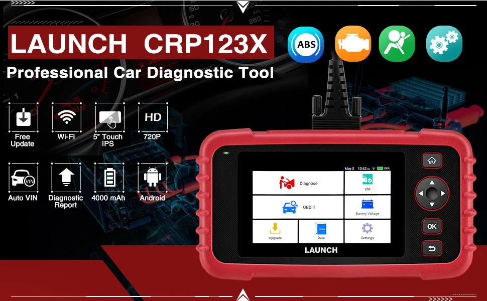 LAUNCH CRP123X OBD2 сканер Профессиональный автомобильный считыватель кода для диагностики передачи двигателя ABS SRS, с обновлением Wi-Fi