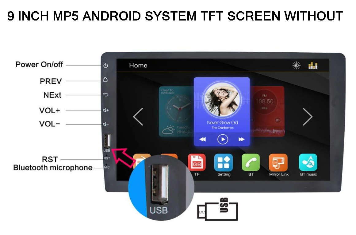 7. Высокое разрешение: HD. 9-дюймовый сенсорный ЖК-экран дает вам максимальный опыт просмотра hd-видео. Поддержка форматов видео AVI / MP4 / FLV / PMP / RM / RMVB / MPG.