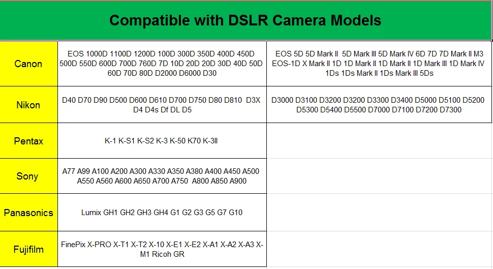 Подходит для всех цифровых зеркальных фотокамер, экшн-камер, видеокамер, DV, студийных аксессуаров для видеосъемки