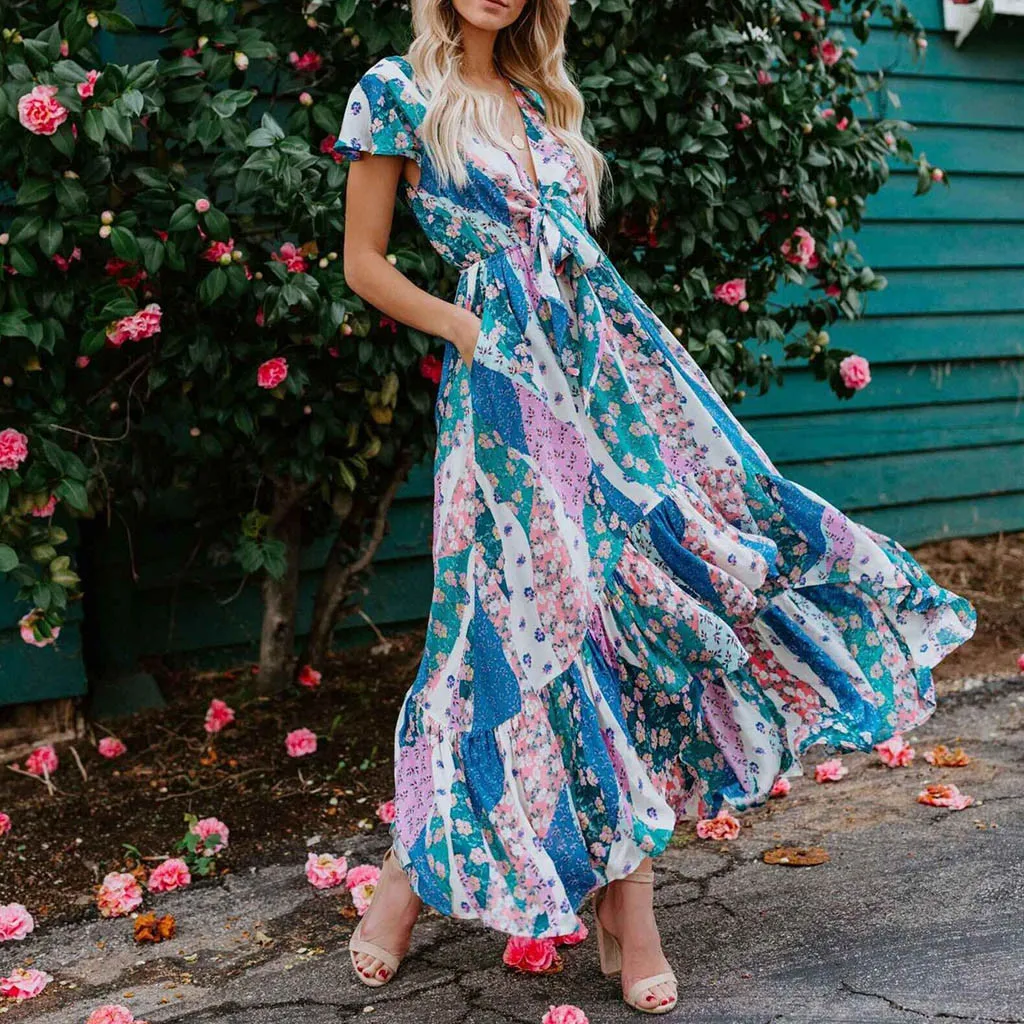 Женское богемное модное сексуальное платье с открытыми плечами и коротким рукавом