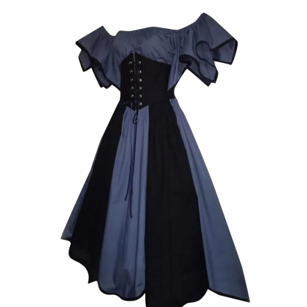 Женское винтажное средневековое платье с коротким рукавом и вырезом лодочкой, платье для косплея