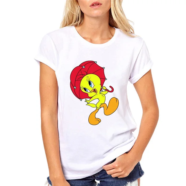 2019 Мода Looney tung птичка Твити мультфильм печати футболки женские летние Милая