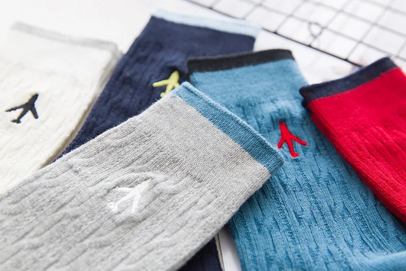 Высокое качество, вышивка самолета, Женское и мужское деловое платье, хлопковые носки, подарок, дизайнерский бренд, новинка, забавные, белые, милые