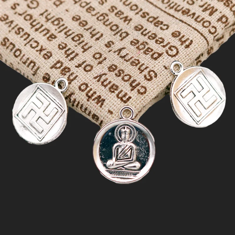 10 шт. покрытые серебром тибетские буддизм, Шакьямуни Свастика амулет подвески DIY амулеты для изготовления ювелирных изделий A1925