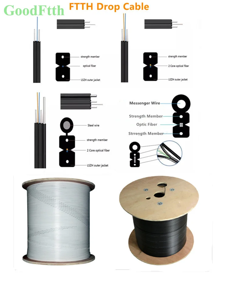 FTTH Крытый оптический падение кабель бабочка SM G657A2 2 ядра белый LSZH FRP GoodFtth 1-3 км