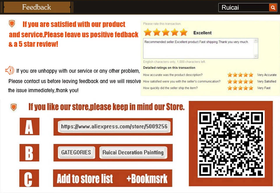 Магазина Ruicai Store работает с 07.04.2019. его рейтинг составлет 93.71 баллов из 100. В избранное добавили 1319 покупателя. Средний рейтинг торваров продавца 4.7 в продаже представленно 842 наименований товаров, успешно доставлено 1251 заказов. 1750 покупателей оставили отзывы о продавце.
