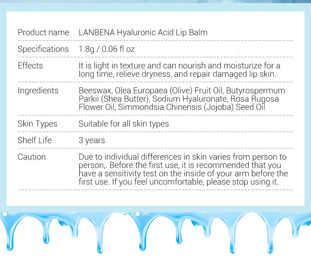 Увлажняющий бальзам для губ с гиалуроновой кислотой LANBENA, мощное увлажнение, облегчение сухости, длительный Уход за губами