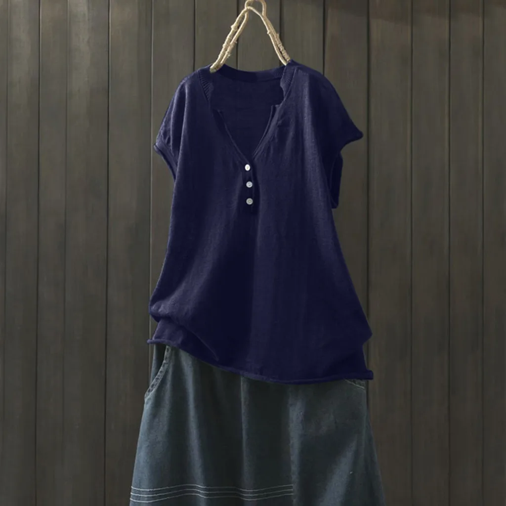 Для женщин Повседневное одноцветное блузка на пуговицах свободная футболка с коротким рукавом топы
