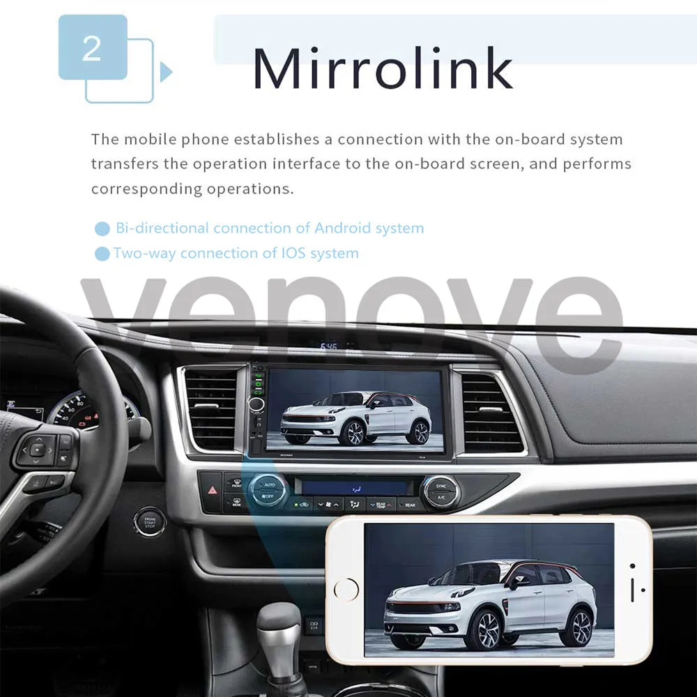 ●HD 7 "2.5D закаленное стеклянное зеркало заднего вида авто радио mp5 плеер ● Улучшенная система MirrorLink: iOS/Android IOS поддерживает один способ подключения к автомагнитоле Android поддерживает два способа подключения к автомагнитоле. ● Встроенный GPS-навигатор: пользователи могут приобрести данную функцию непосредственно в Google Play/App Store для навигации в режиме офлайн. Если подключен Wi-Fi, Google Maps-идеальный помощник, чтобы добраться до места и нигде не заблудиться! ● Встроенный Wi-Fi: подключитесь к Wi-Fi, и вы найдете новые карты, наиболее удобной является онлайн версия карты. ● Камера заднего вида: камера работает, когда автомобиль идет на задней передаче, переключение происходит автоматически (требует дополнительных настроек) ● Управление рулевым колесом: через него вы можете управлять функциями, которые вам нужны с помощью рулевого колеса, более удобно ● Встроенный Bluetooth с A2DP, гарнитура Hands-free, список контактов, Bluetooth-гарнитура для громкой связи, музыкальный проигрыватель Bluetooth, автозагрузка телефонных книг ● Видеорегистратор: вы выбираете запись, и автомобиль начнет воспроизведение, данные могут сохраняться ● Два входа для USB-адаптера ● Поддержка файлового менеджера: поддержка загрузки, установки и удаления более тысячи приложений для Android ● Мультиязычная поддержка: поддержка до 40 языков ● Вы можете слушать музыку со своего мобильного телефона без использования каких-либо кабелей, также система поддерживает подключение через USB. ● FM-радио: вы можете транслировать музыку на автомобильную стерео-систему по частоте FM, чтобы наслаждаться оригинальным стереозвуком автомобиля с 18 предустановленными станциями ● Настройка времени: вы можете использовать соединение по сети или GPS, чтобы установить дату и время автоматически, а также их можно настроить вручную. Технические характеристики: Система: Android 9.1 Размер экрана: 7" Разрешение экрана: 1024x600 Зеркальная ссылка: Android/IOS(5-8) Радио-диапазон: FM Выходная мощность: 4*45 Вт Рабочая температура:-40℃-80℃ Функция управления с руля: поддерживается Версия Bluetooth: 4.0 Радио-диапазон: FM Видео-выход: поддерживается Карты: встроенные офлайн-карты Wi-Fi: поддерживается USB: два USB-порта Изменение логотипа автомобиля: поддерживается Форматы аудио: APE/FLAC/WAV/MP3/WMA и т.д. Форматы видео: MKV/RMVB/AVI/MP4/MDV и т.д. Форматы изображений: PNG/JPEG/JPG/GIF/WBMP/BNP и т.д.