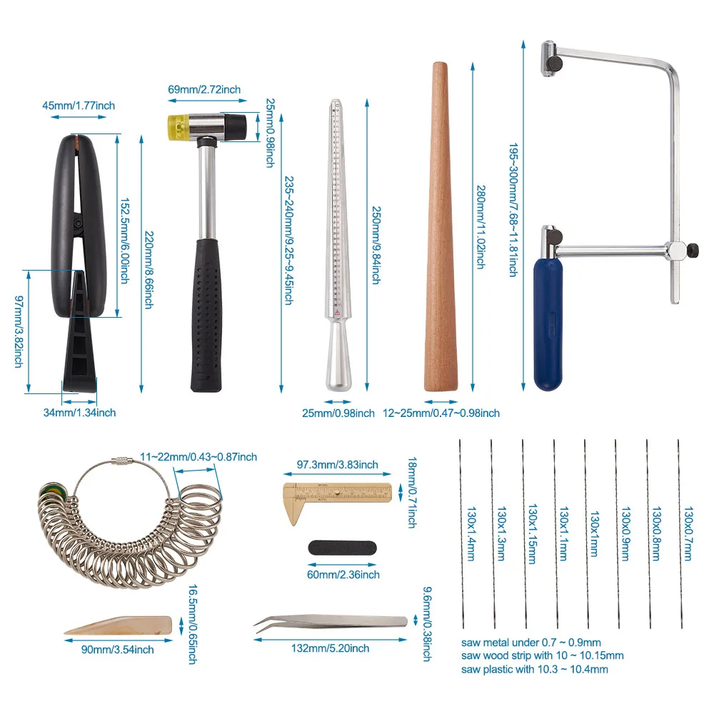 Кольцом инструмент Размеры: около 1,1 ~ 2,4 см в диаметре, 27 см в длину; Молоток Размеры: около 6,9 см в ширину, 23,5 ~ 24 см в длину, 2,5 см толщиной; Размер ручки: около 25 мм в диаметре, 250 мм в длину; Размер кольца: около 11 ~ 22 мм внутренний диаметр, 27 шт./компл.