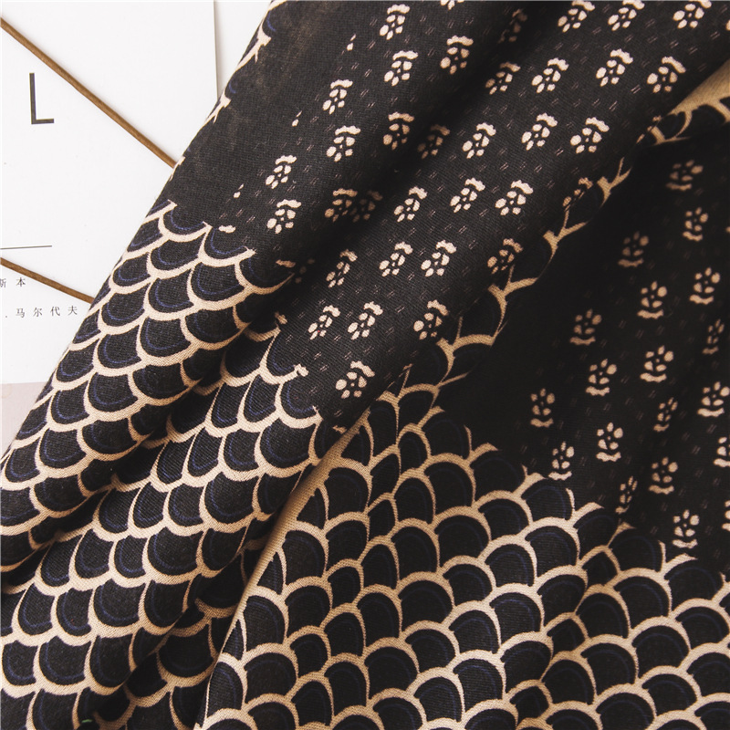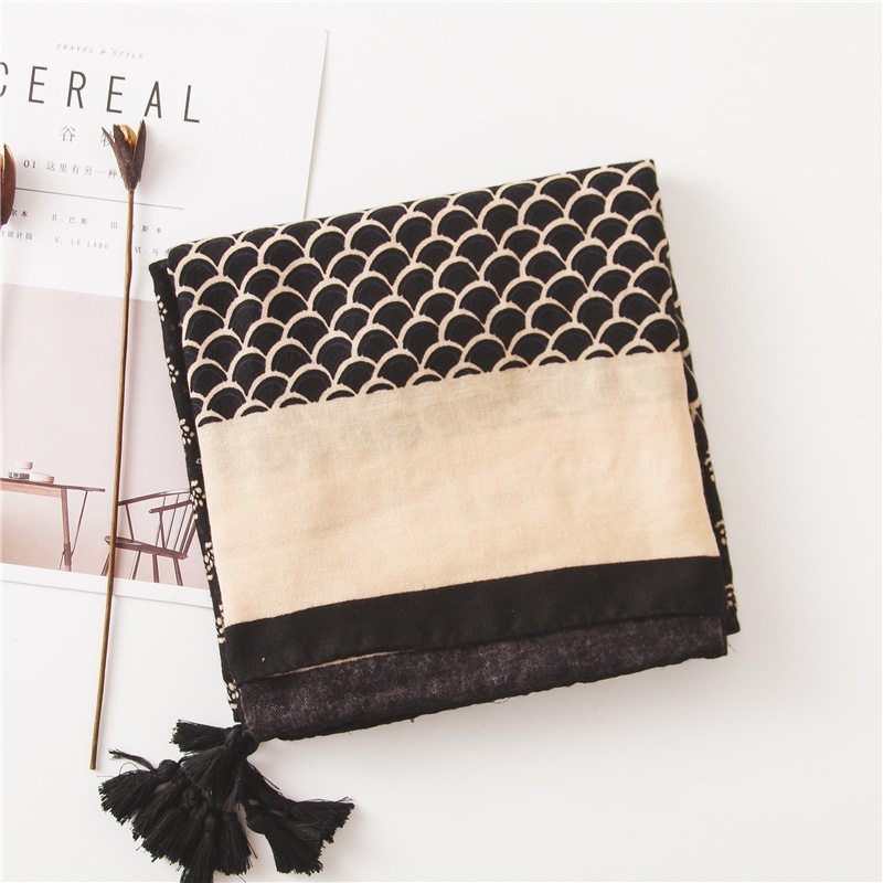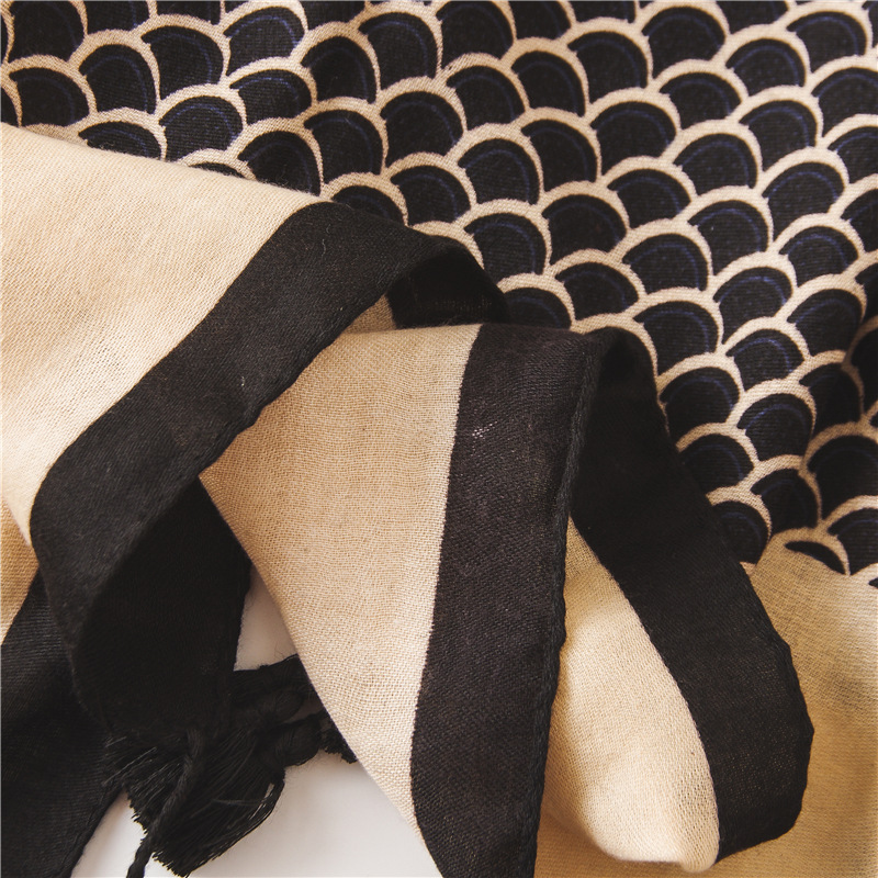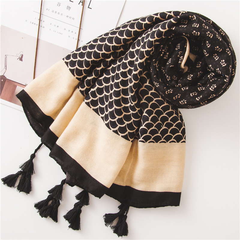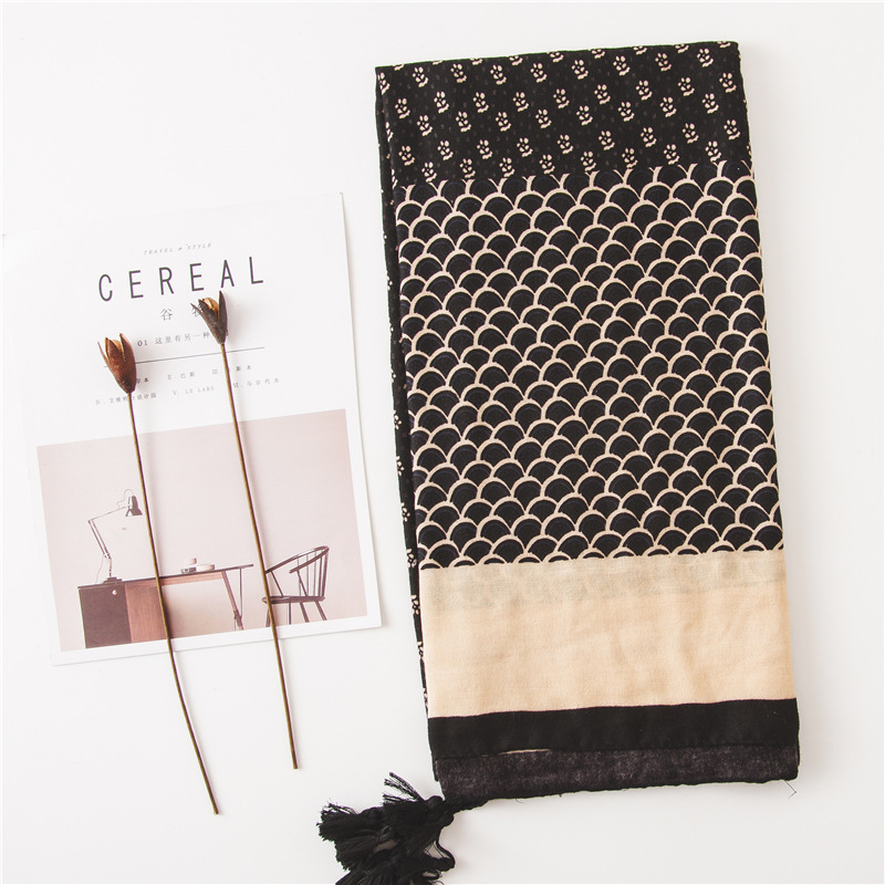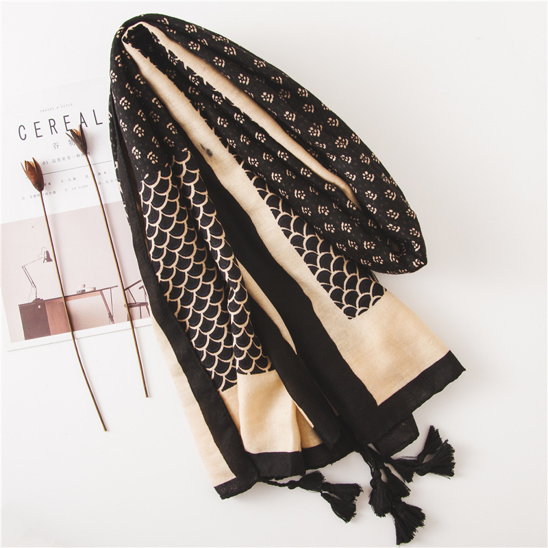 Женский шарф из вискозы с цветочным принтом, Черный шарф из пашмины, мусульманский хиджаб, осень 2019