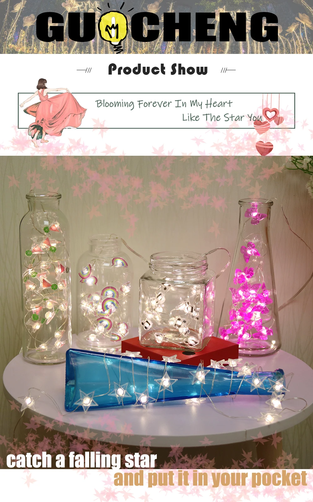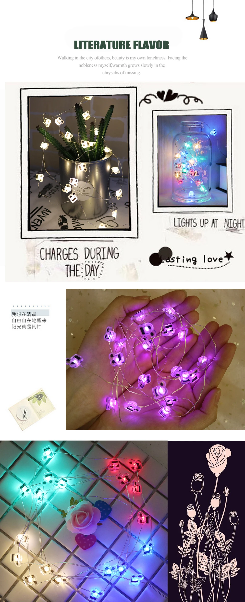 Размер: 20 светодиодов с пластиковыми аксессуарами; 10 см зазор между 2 светодиодами Излучающий цвет: теплый белый, 4 цвета, фиолетовый Длина: 2,2 м Мощность поставки: Требуется 2 шт. (1,5 V) батарейки типа АА (не входят в комплект поставки) Материал: пластиковые аксессуары, медный струнный светильник Цвет внешнего вида: как на фото Применение: для использования в помещении, дома или на праздник, DIY Украшение