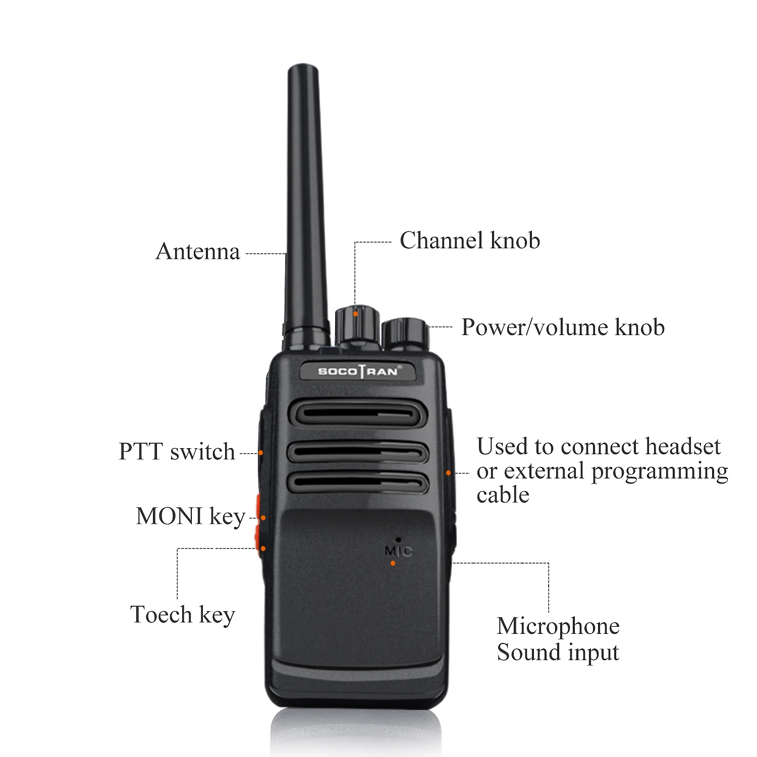 Двухканальные радиостанции SOCOTRAN УВЧ-рации просты в использовании и отлично работают на большом расстоянии. Каждое радио поставляется с литий-ионным аккумулятором емкостью 1200 мАч. Срок службы батареи превосходный, который может длиться через 10 часов и в режиме ожидания в течение 7 дней. Высококачественный динамик и микрофон делают звук чистым и чистым даже за несколько миль. Так что это отлично подходит для поддержания связи во время игры/работы на улице. УВЧ волны имеют возможность проникать в дерево, сталь и бетон, что дает вам лучший диапазон и производительность в городской среде и вокруг зданий. УВЧ операция имеет меньше шансов на помехи между беспроводными системами.