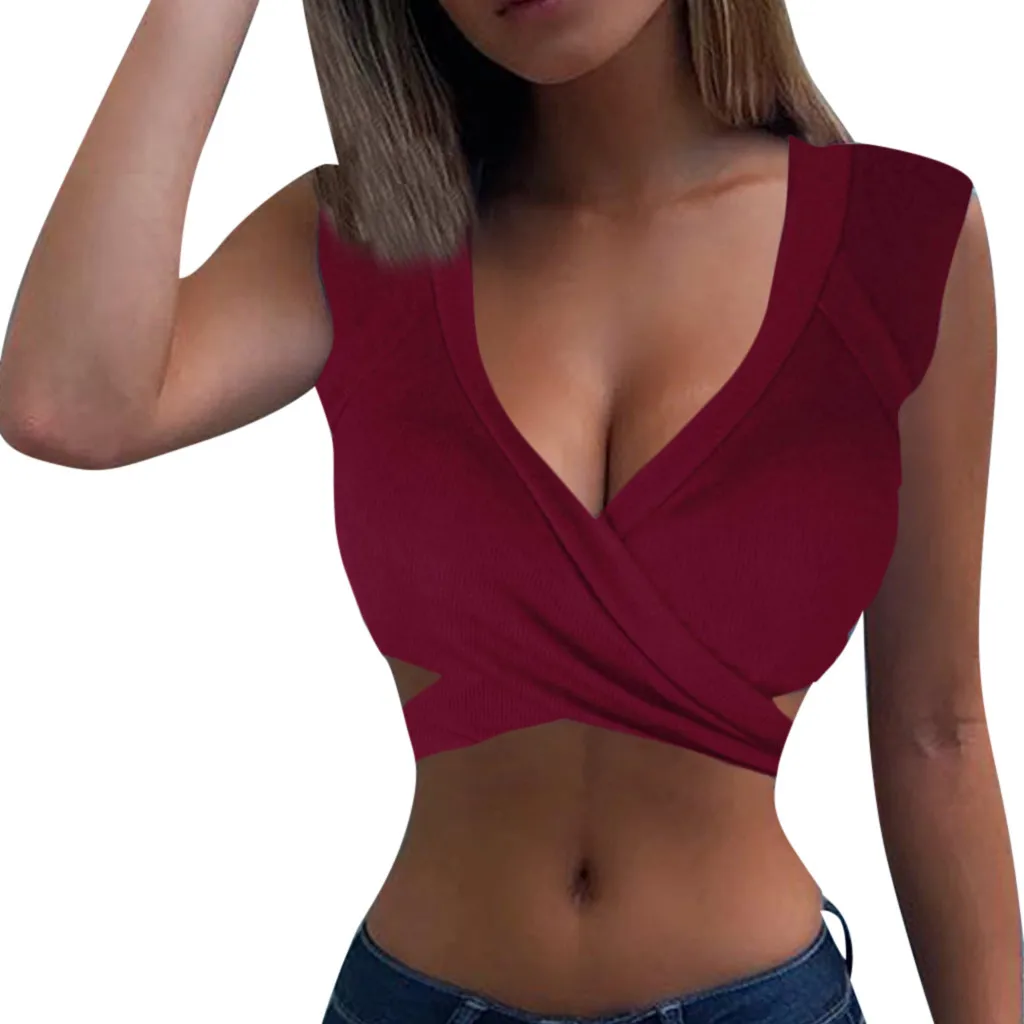 Женские летние без рукавов ремни пупка короткие блузка без воротника