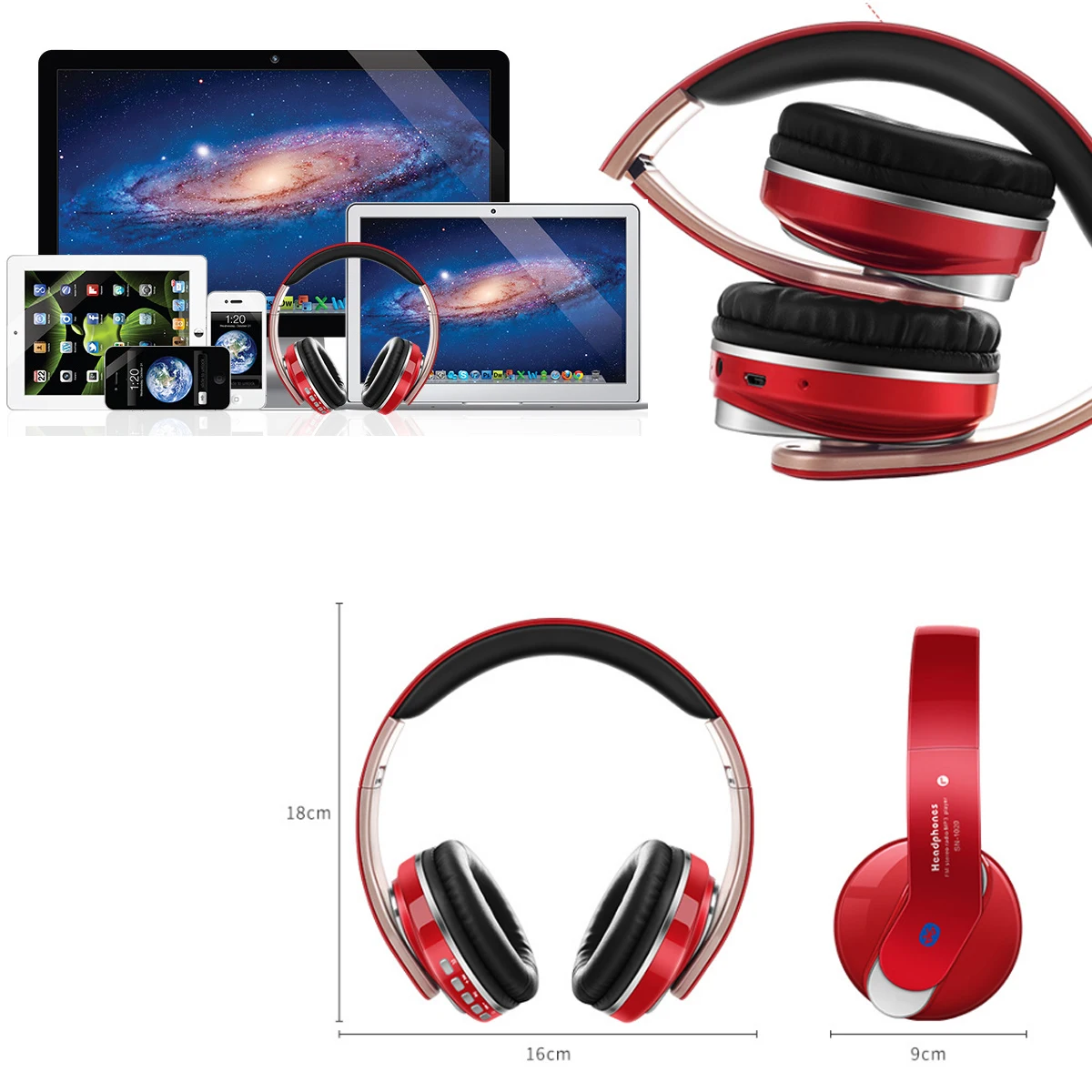 Портативные складные наушники с зарядкой от USB, fm-радио, Hi-Fi, супербасы, Беспроводные стереонаушники Bluetooth