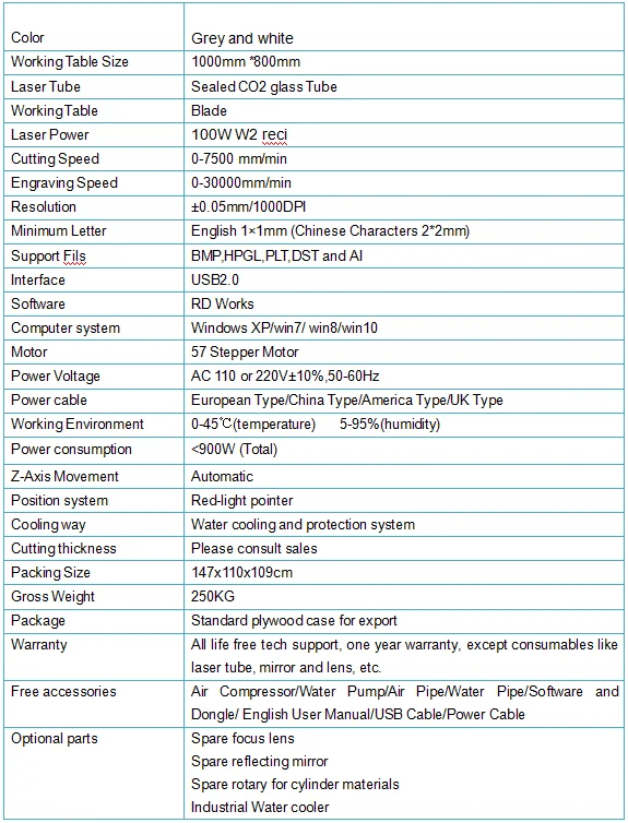 Основные характеристики: лазерная трубка Бренд: Reci или EFR Оригинал: Китайская лазерная трубка EFR 60 Вт/80 Вт/100 Вт на выбор (блестящая гарантия 12 месяцев, 6000 часов работы) бренд Reci лазерной трубки по желанию (10000 часов работы жизненный цикл). Опциональная трубка 80 Вт w1 / 100 Вт w2