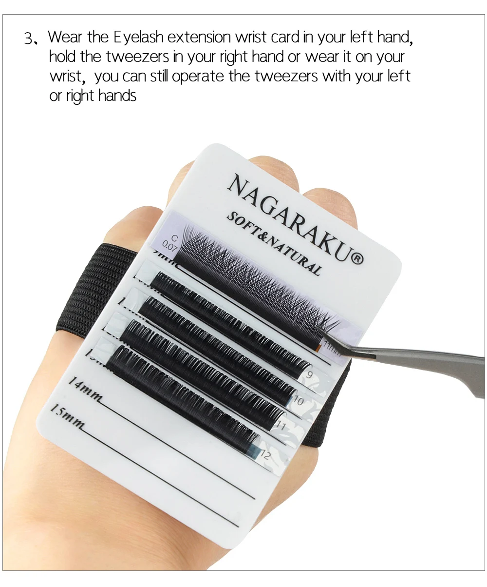Инструкция: вставьте резиновую ленту на заднюю часть паллета, а затем положите ее на запястье, чтобы подобрать ресницы из держателя, пока вы накладываете ресницы.