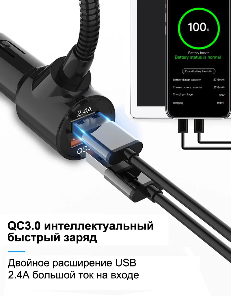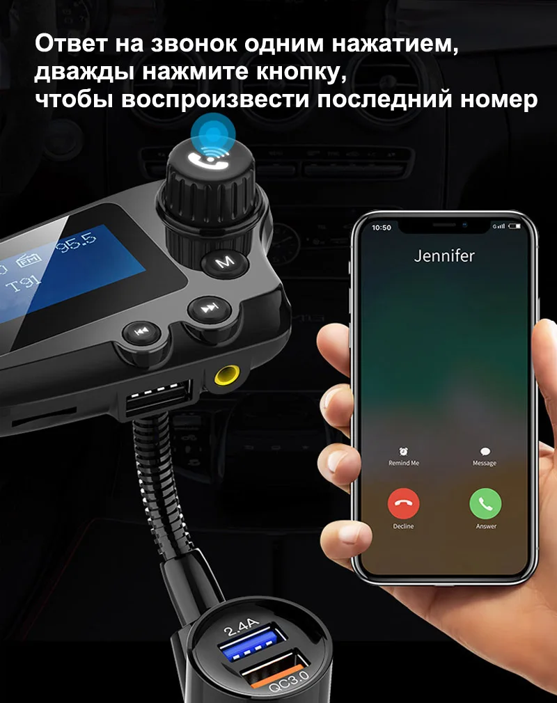 Jajabor Автомобильный блютуз гарнитура с fm трансмиттер FM модулятор A2DP AUX Аудио Автомобильный плеер QC3.0 Поддержка быстрой зарядки TF Card / U Воспроизведение дисков обратите внимание: если вы используете воспроизведение с U-диска, U-диск, отформатированный в формате файла FAT32, а затем повторно загрузите MP3-песни. Особенности: 1. Определение напряжения батареи после включения. 2. Поддержка Bluetooth громкой связи, встроенный микрофон, удобный и безопасный ответ на вызовы; идентификатор звонящего 3. Обработка шума во время вызова CVC, подавление шума ветра, технология полнодуплексного вызова 4. Поддержка функции мобильного телефона A2DP, непосредственно играть высококачественную мобильную музыку после подключения к Bluetooth 5. Автоматически подключаться после включения питания, автоматически входить в состояние сопряжения 6. Поддержка расширения TF карты для воспроизведения музыки в формате MP3 / WMA 7. Dual USB автомобильное зарядное устройство, выход 5V-3000m, может заряжать портативное оконечное оборудование 8. Выходной порт AUX, отображение названия песни Особенности: Вход 12В-24В. 1,74-дюймовый ЖК-дисплей. FM-передатчик: диапазон частот 87,5–108,0 МГц. Беспроводной громкой связи. Потоковая передача музыки со смартфона на автомобильную аудиосистему через FM-передачу. Два USB-порта для зарядки: КК 3,0: 3,6-6,5 В / 3 А, 6,5-9 В / 2 А, 9-12 В / 1,5 А. 5 В / 2,4 А: интеллектуальный заряд с интеллектуальным входом тока. Поддержка USB флэш-накопителя. Поддержка TF карт. Поддержите выход AUX к порту Aux автомобиля. Автомобильный монитор. В коплект входит: 1 х Автомобильный громкой fm трансмиттер 1X аудио кабель 1 х пользователя Manua