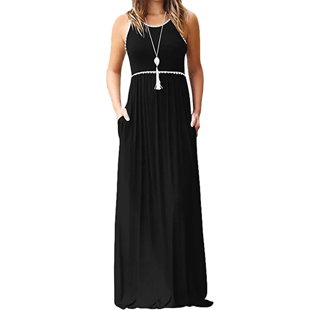 Женское кружевное платье без рукавов JaycoJaycosin, летнее платье с круглым вырезом и карманами для вечеринки