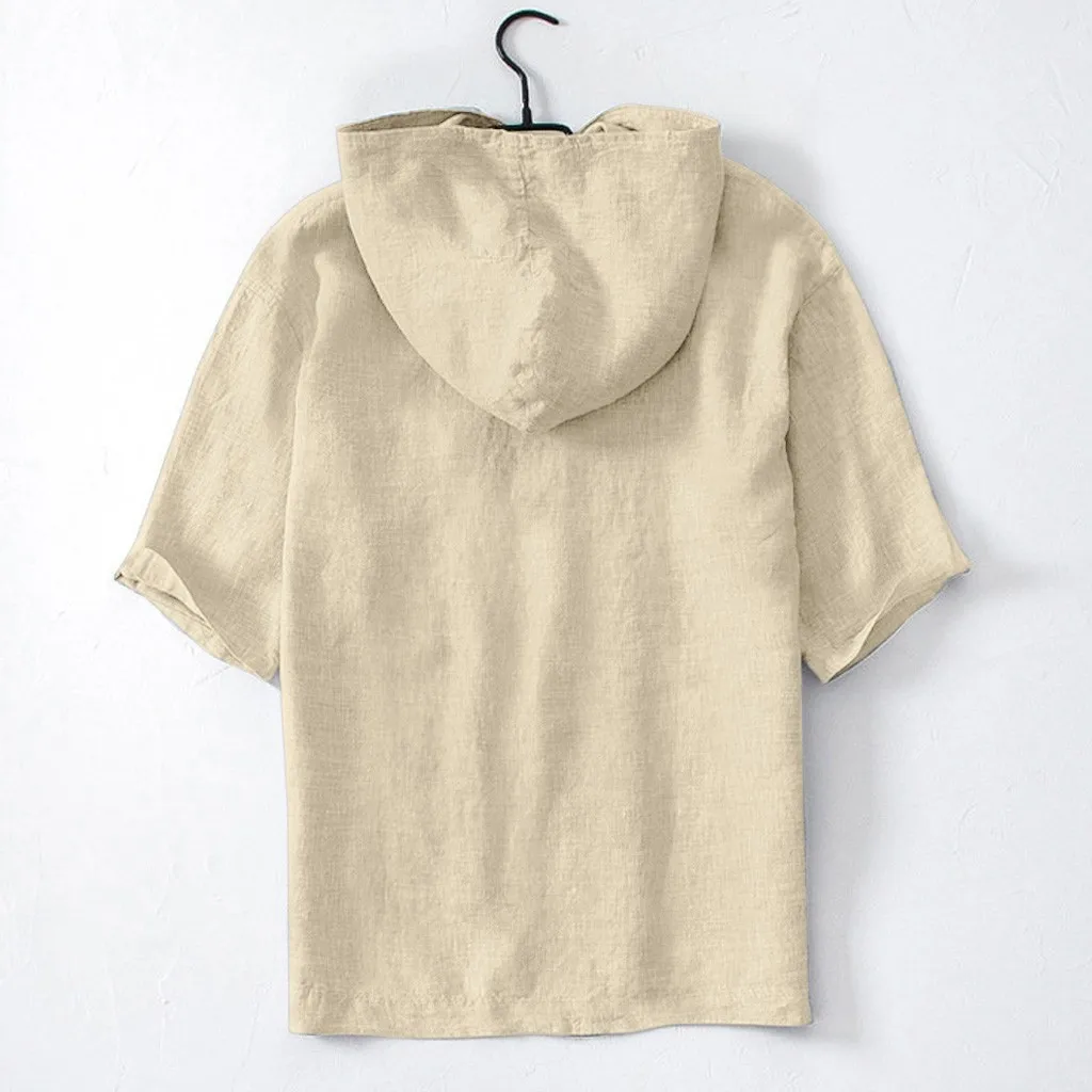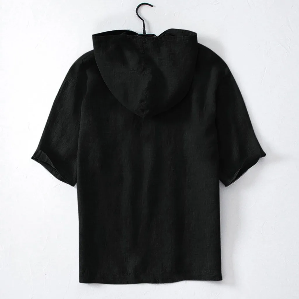 Мужские Мешковатые хлопковые льняные однотонные футболки с коротким рукавом в стиле ретро с капюшоном Топы Блузки