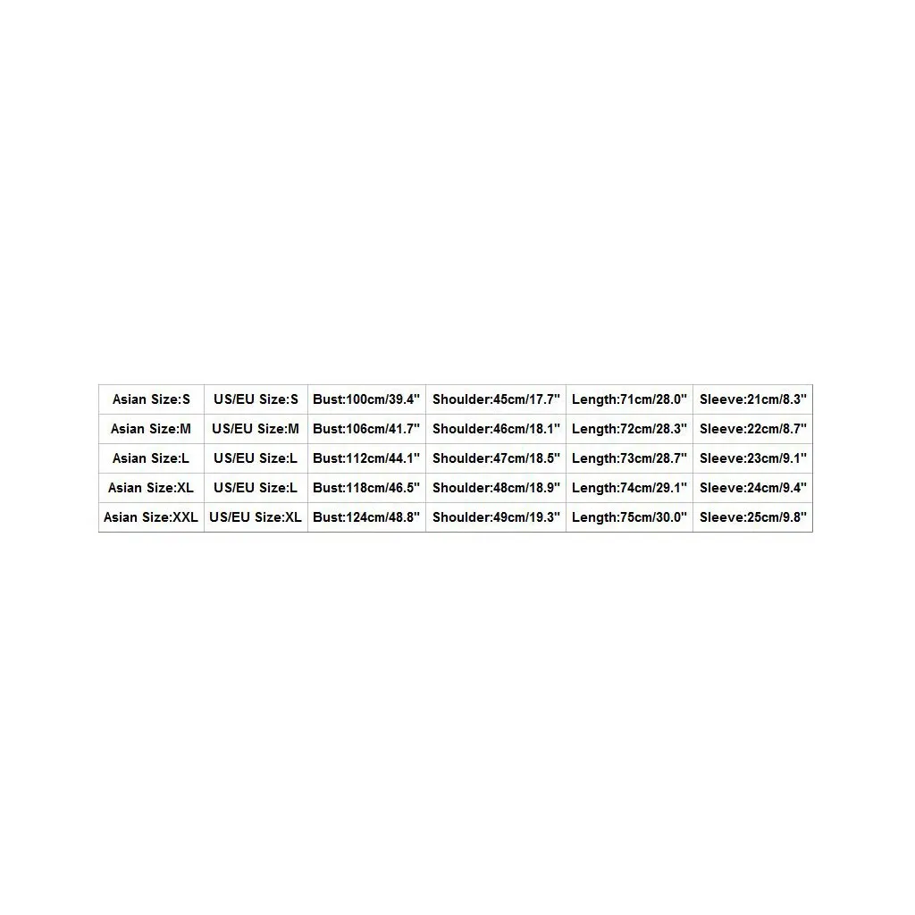 | Азиатский Размер: XXL | Размер США/ЕС: XL | Бюст: 124 см/48,8" | Плечо: 49 см/19,3" | Длина: 75 см/30,0" | Рукав: 25 см/9,8" |