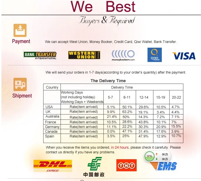 (1) если тариф наложен на продукты, продаваемые нашим магазином в стране-импортере, Покупатель несет ответственность. Продавец не несет ответственности. (2) Если товар задерживается в стране назначения из-за таможни страны-импортера, покупатель должен знать об этом заранее. Продавец не несет ответственности. (3) Если товары задерживаются таможней из-за того, что покупатель не уплатил налоги, покупатель несет полную ответственность. Продавец не несет ответственности. (4) Когда посылка прибывает локально, покупатель несет ответственность за невозможность подписать и получить Экспресс-почту по причинам покупателя. Продавец не несет ответственности.