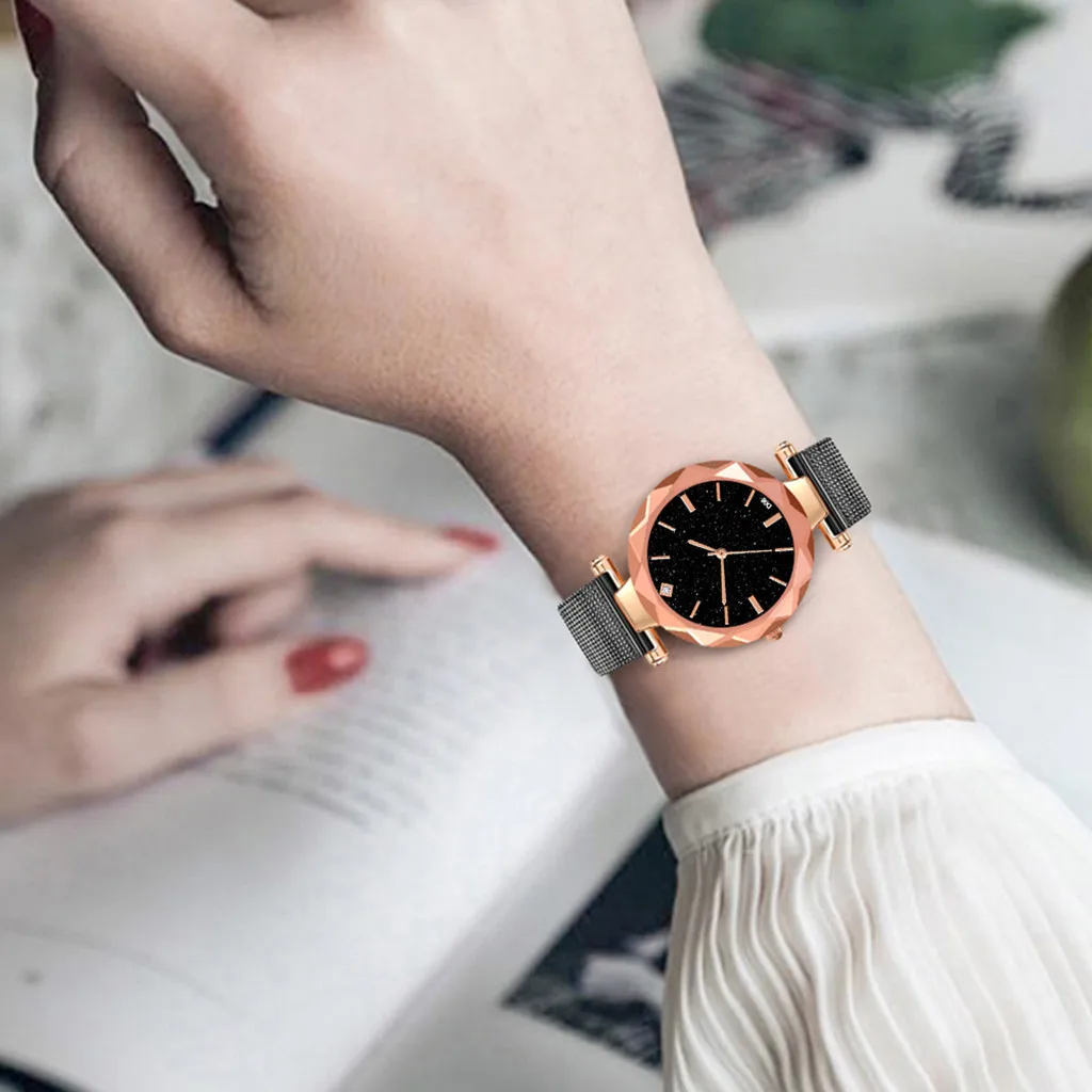 Женские дизайнерские часы, роскошные часы для женщин, 2019 минималистичный Звездный циферблат с бриллиантовым сетчатым ремешком из нержавеющей стали, женские часы #50