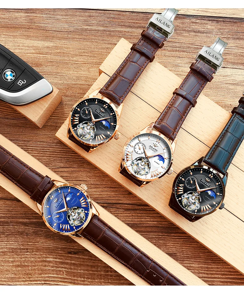 AILANG Relogio Masculino 41 мм автоматические часы мужские Бизнес наручные часы Роскошные Скелет турбийон механические часы 50 м водонепроницаемые