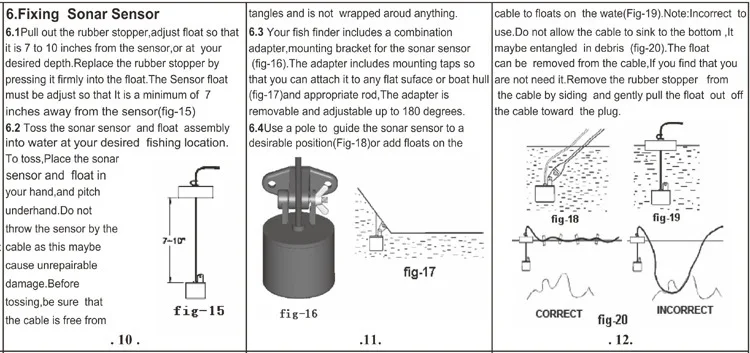7) выбираемая пользователем чувствительность, единицы измерения глубины и настройка сигнализации для рыбы