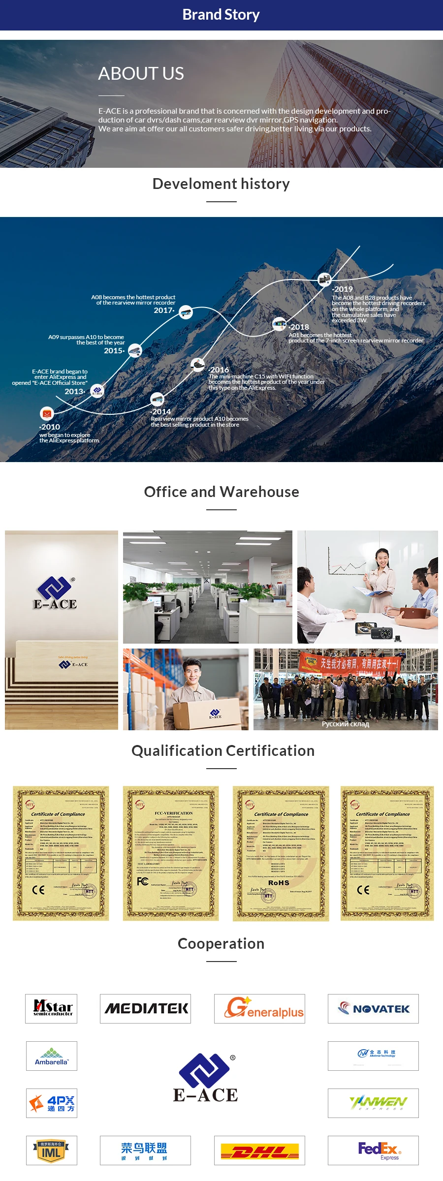 E-ACE является ведущим брендом и золотым продавцом в AliExpress, наша концепция бренда-«безопасное вождение, лучшая жизнь». Мы предлагаем наши продукты высшего качества для всех водителей, более безопасное вождение для всех водителей и сделать их лучше жизни. Все клиенты очень довольны нашей продукцией и поддержкой. Ниже приведены E-ACE и другие детали.